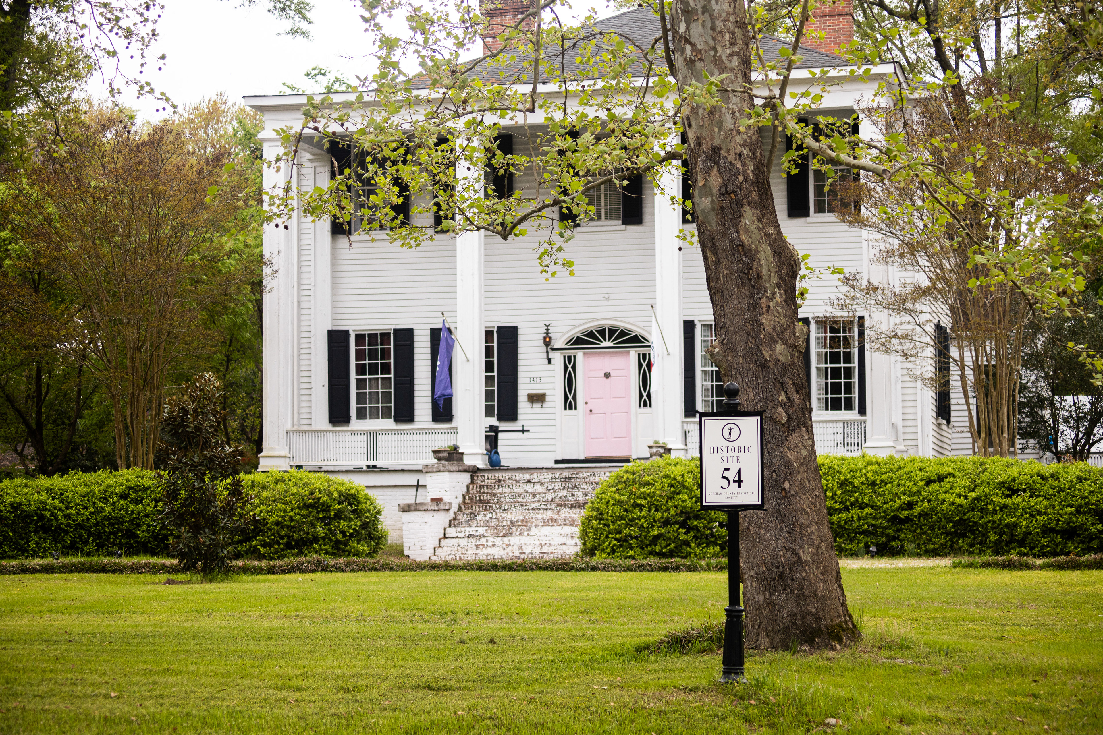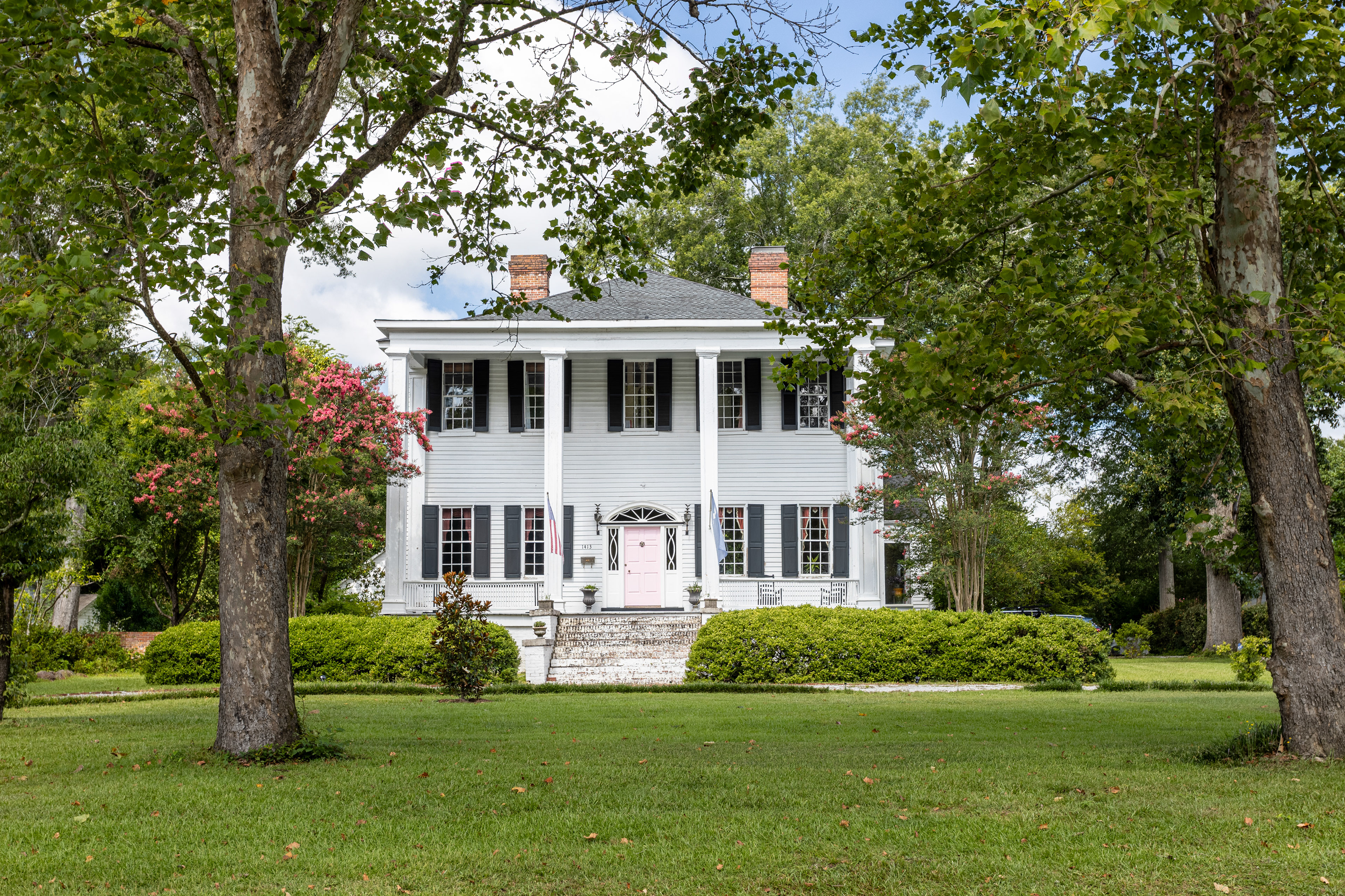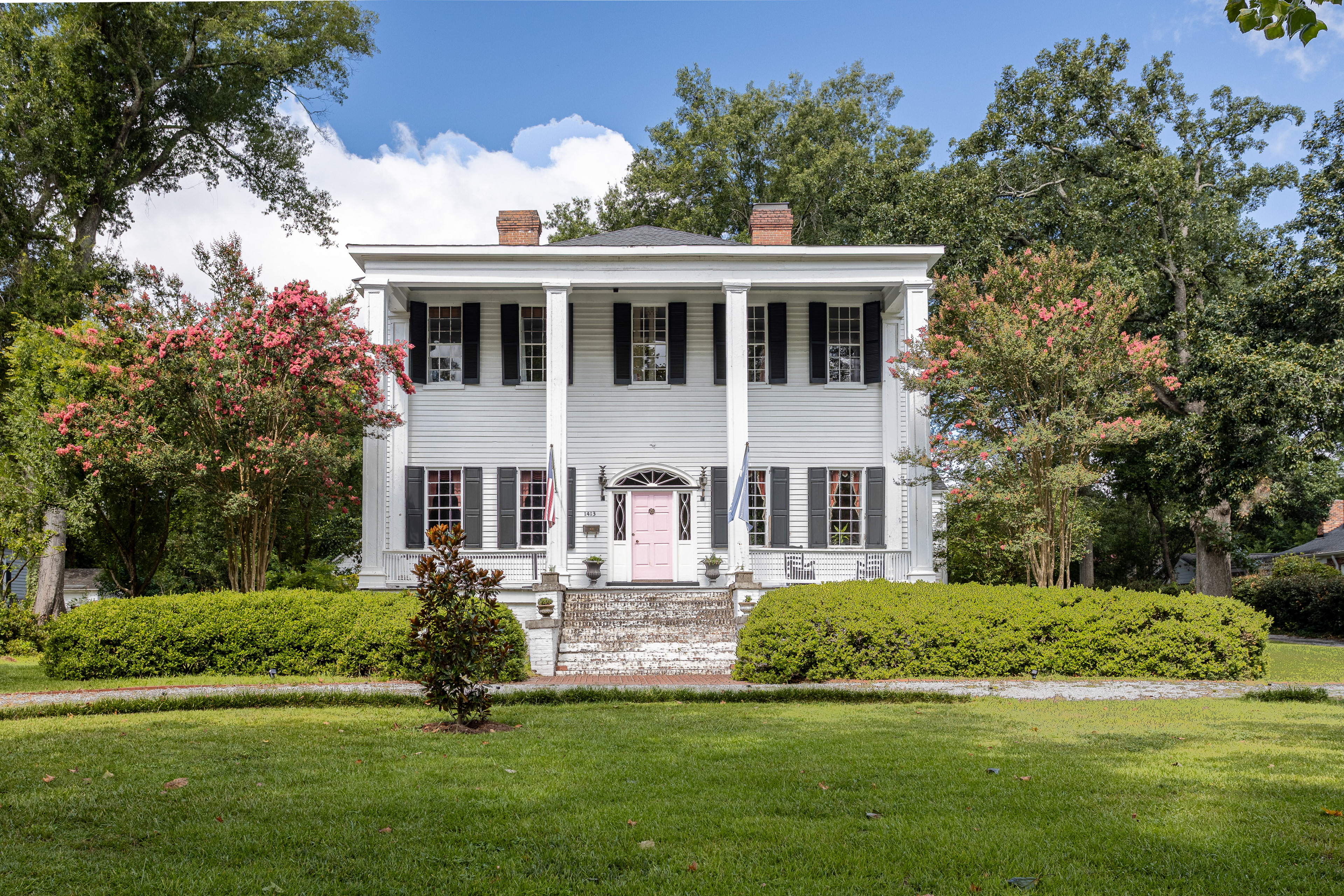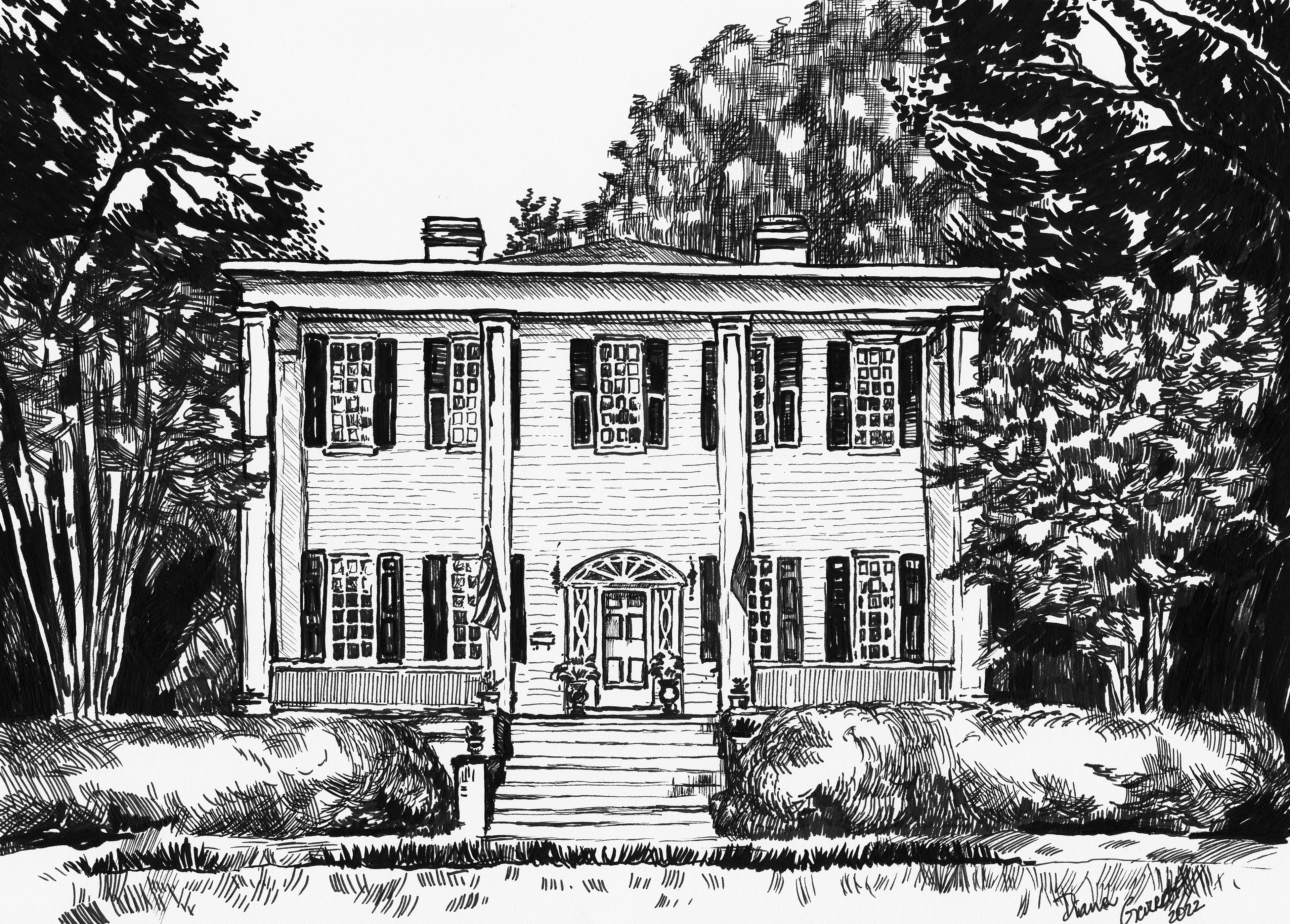This detailed black-and-white ink drawing captures the timeless charm of a historic Southern home. Using expressive linework, cross-hatching, and rich contrast, I highlight the symmetry of the façade, the rhythm of the tall windows and shutters, and the welcoming front steps framed by manicured shrubs. The surrounding trees add movement and depth, creating a sense of place and quiet atmosphere.